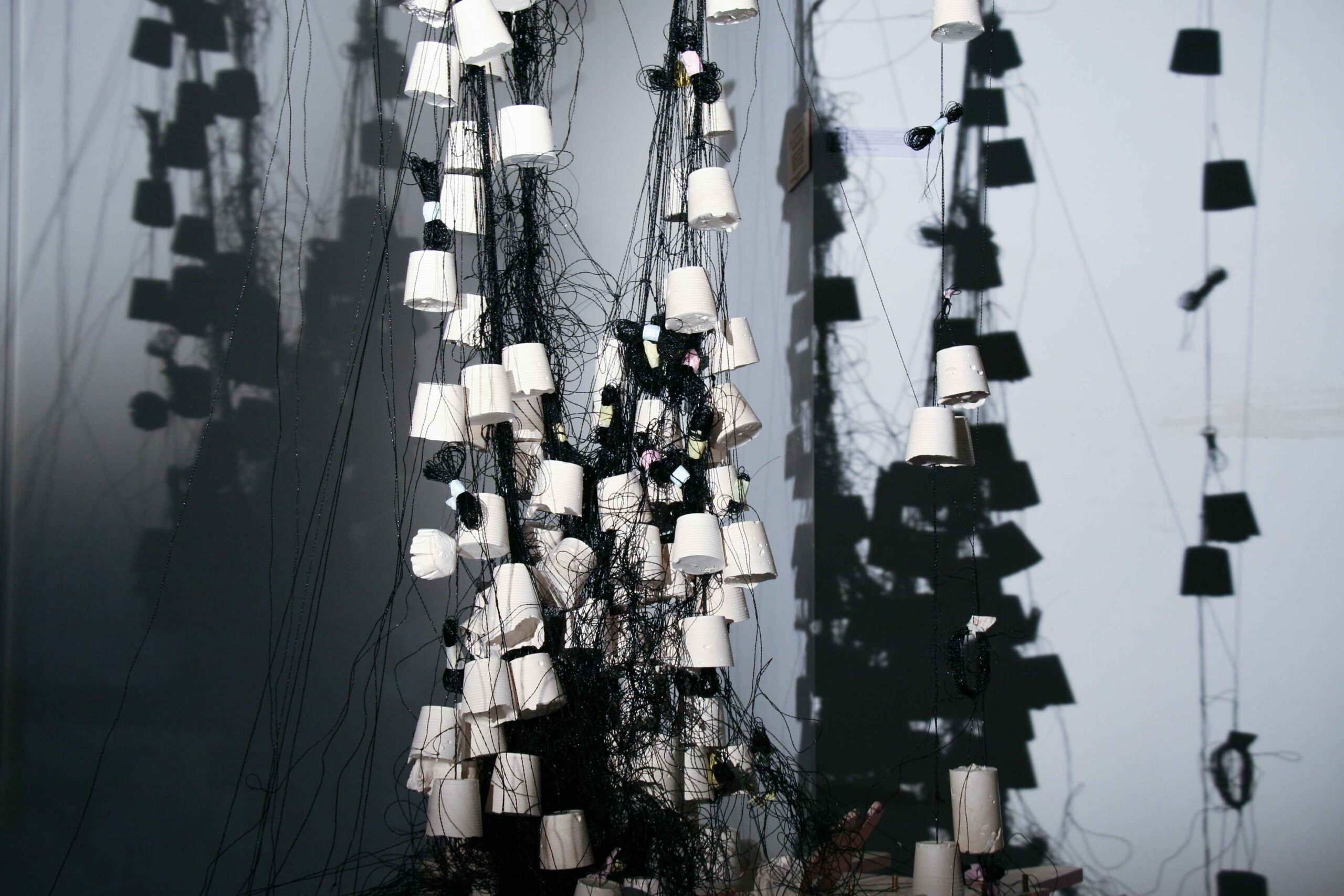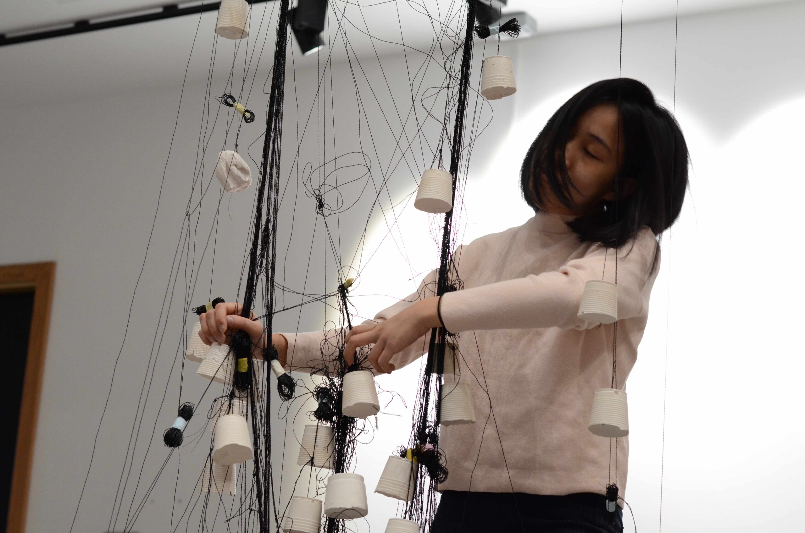 The 1:1 inhabitable installation is designed in reference of Spitafields – a historical area in East London. Following the life path of the story tale character Daniel Clarke, a journey man weaver, the installation leads the visitor through a tactile experience of various materials, distinct surface finishes and light rays reflected in the 8 metre tall fishing rod.